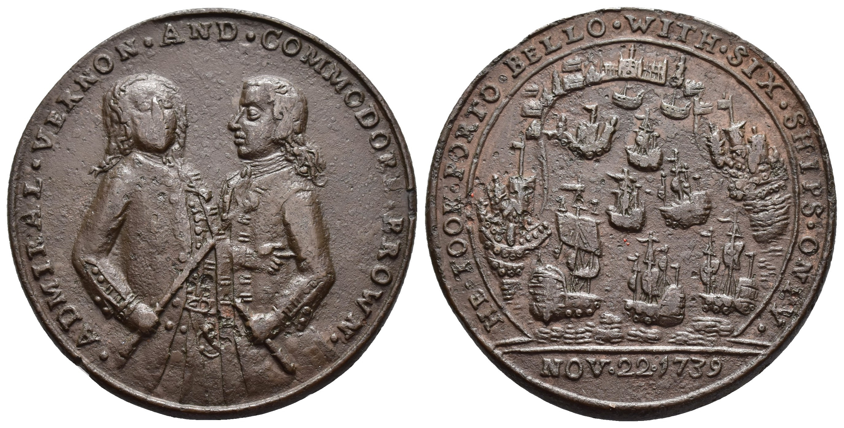 MONEDA EXTRANJERA. GRAN BRETAÑA. Medalla. 1739. Vernon y Brown afrontados. CU 14,74 g. 38 mm. PBvb-1A. MBC.