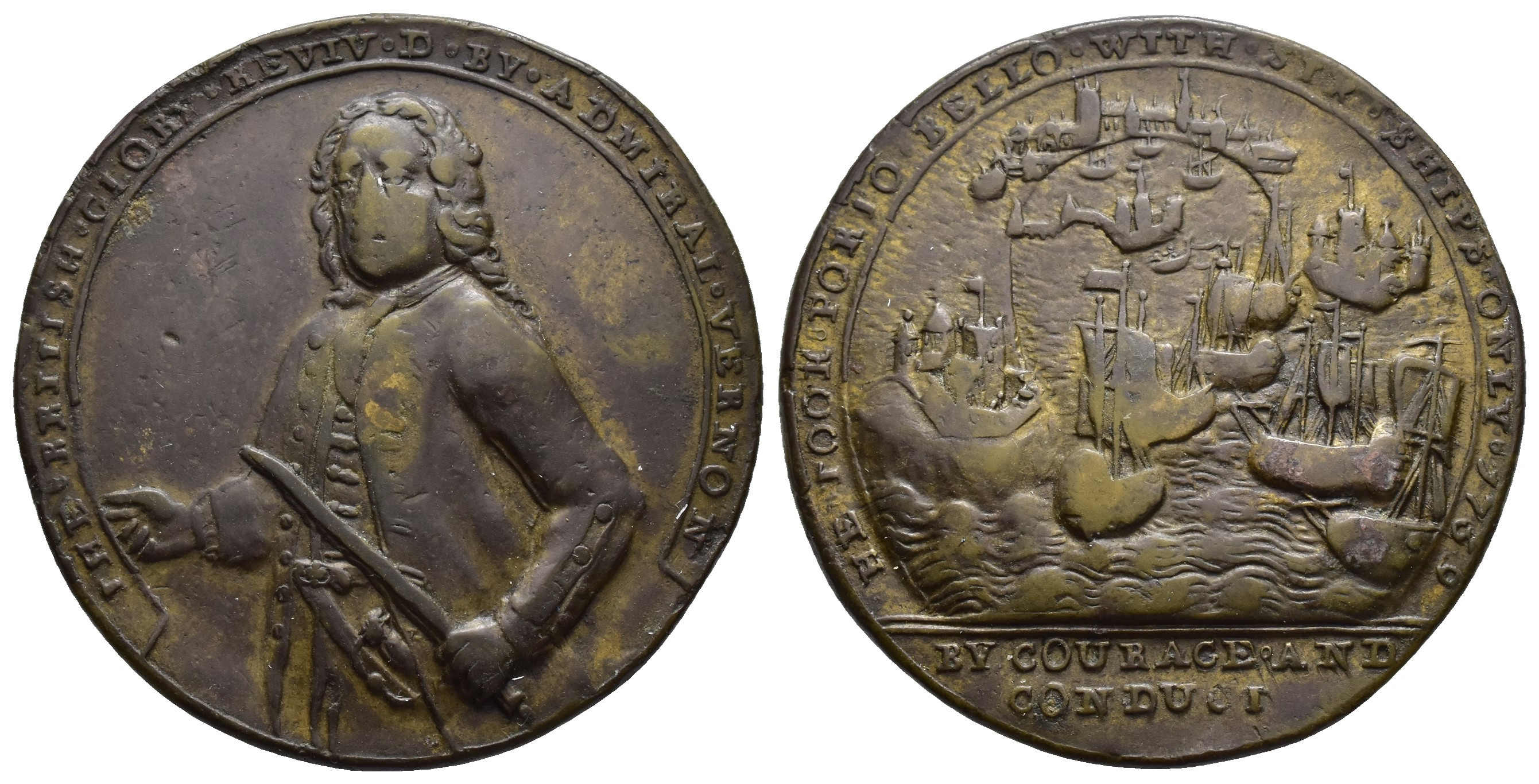 MONEDA EXTRANJERA. GRAN BRETAÑA. Medalla. 1739. Toma de Portobello. Vernon de medio cuerpo a izq. CU 18,63 g. 36,3 mm. PBvb-21Q. MBC-.