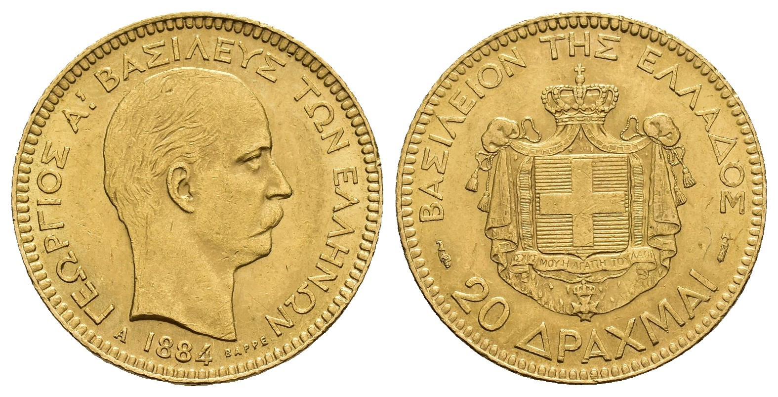 MONEDA EXTRANJERA. GRECIA. Jorge I. 20 dracmas. 1884. A. AR 6,46 g. 21,3 mm. KM-56. Pequeñas marcas. EBC-/MBC+.