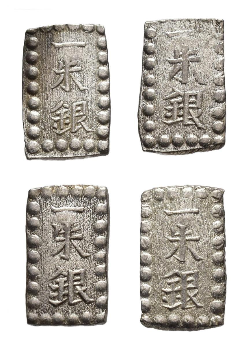 MONEDA EXTRANJERA. JAPÓN. Lote de 4 piezas de 1 shu. Moneda de Samurai (1837-1869). EBC-/EBC.