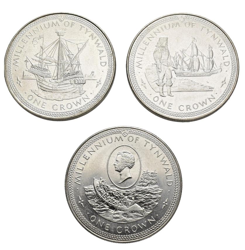 MONEDA EXTRANJERA. ISLA DE MAN. Isabel II. Lote de 3 monedas de 1 corona. SC.