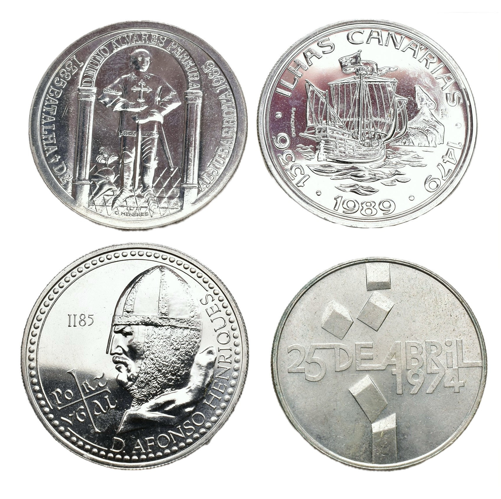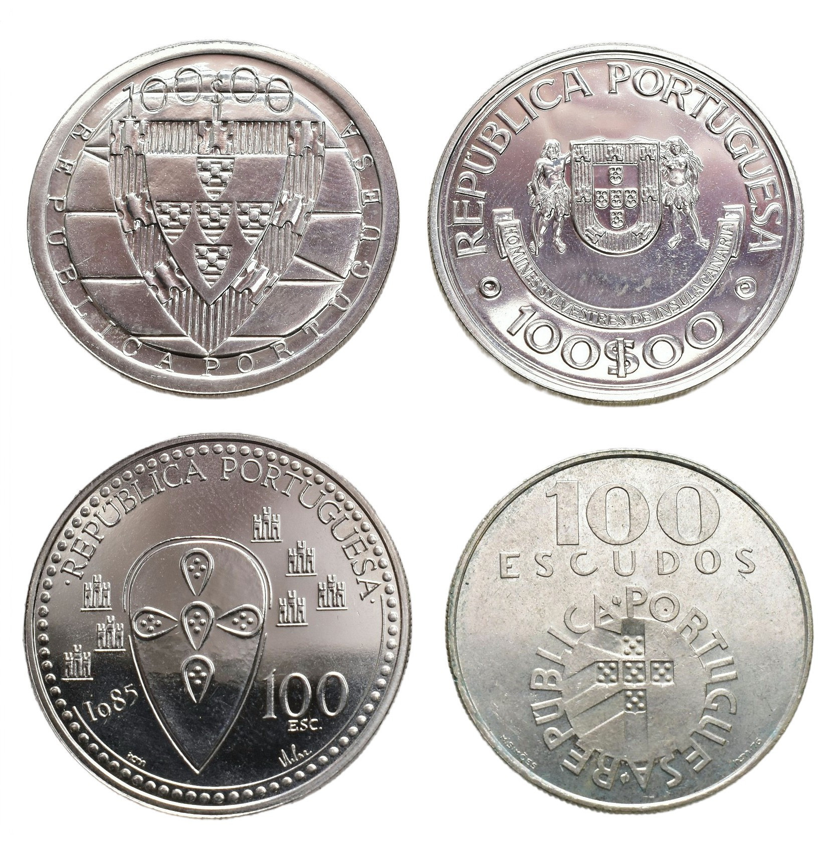 MONEDA EXTRANJERA. PORTUGAL. Lote de 4 piezas de 100 escudos de plata: 1976, 1985 (2) y 1989. MBC+ y prueba.