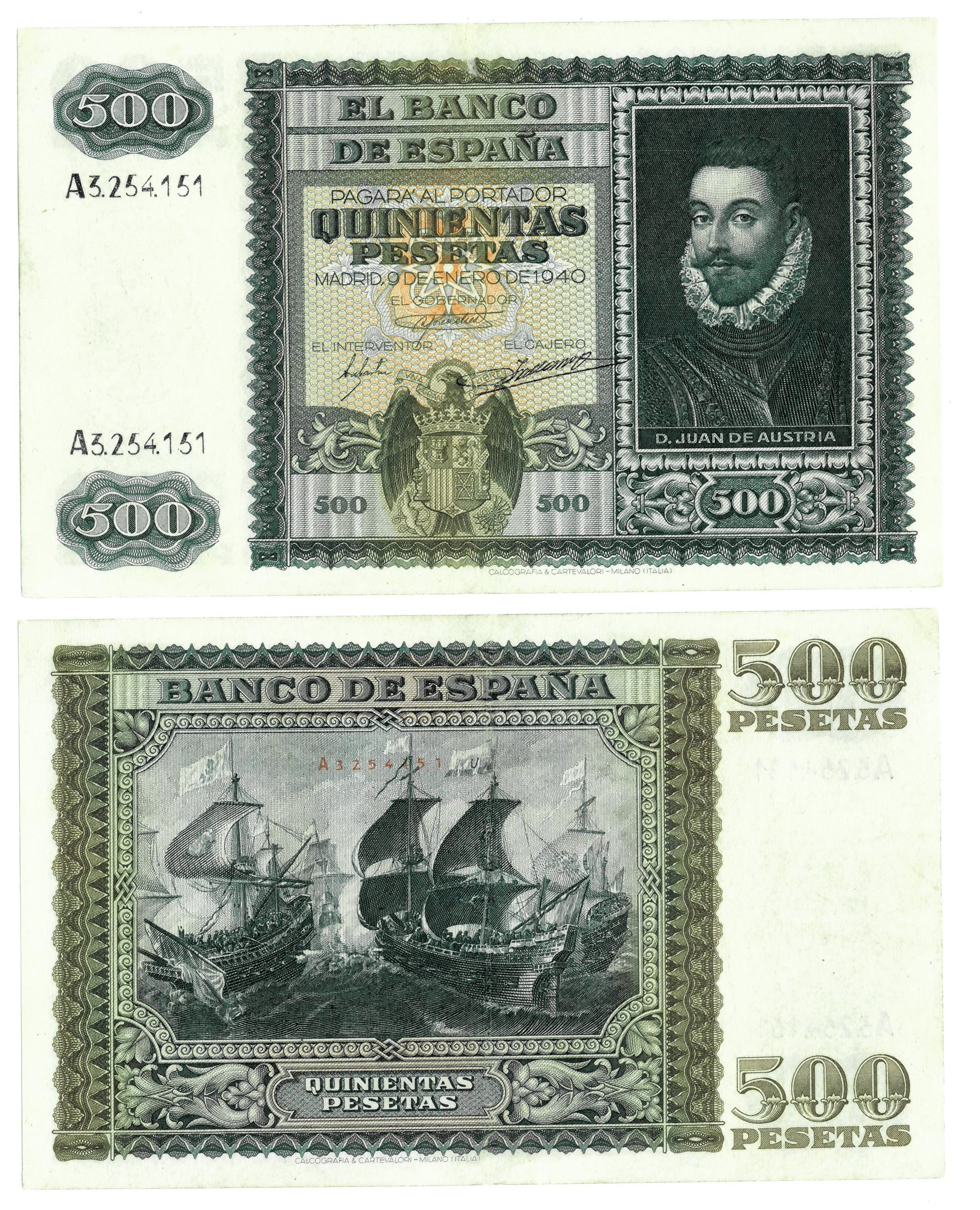 BILLETES ESPAÑOLES. BANCO DE ESPAÑA. 500 pesetas, 9 de enero de 1940, Sin serie, ED-439. EBC. Restaurado en eje central y esquinas.