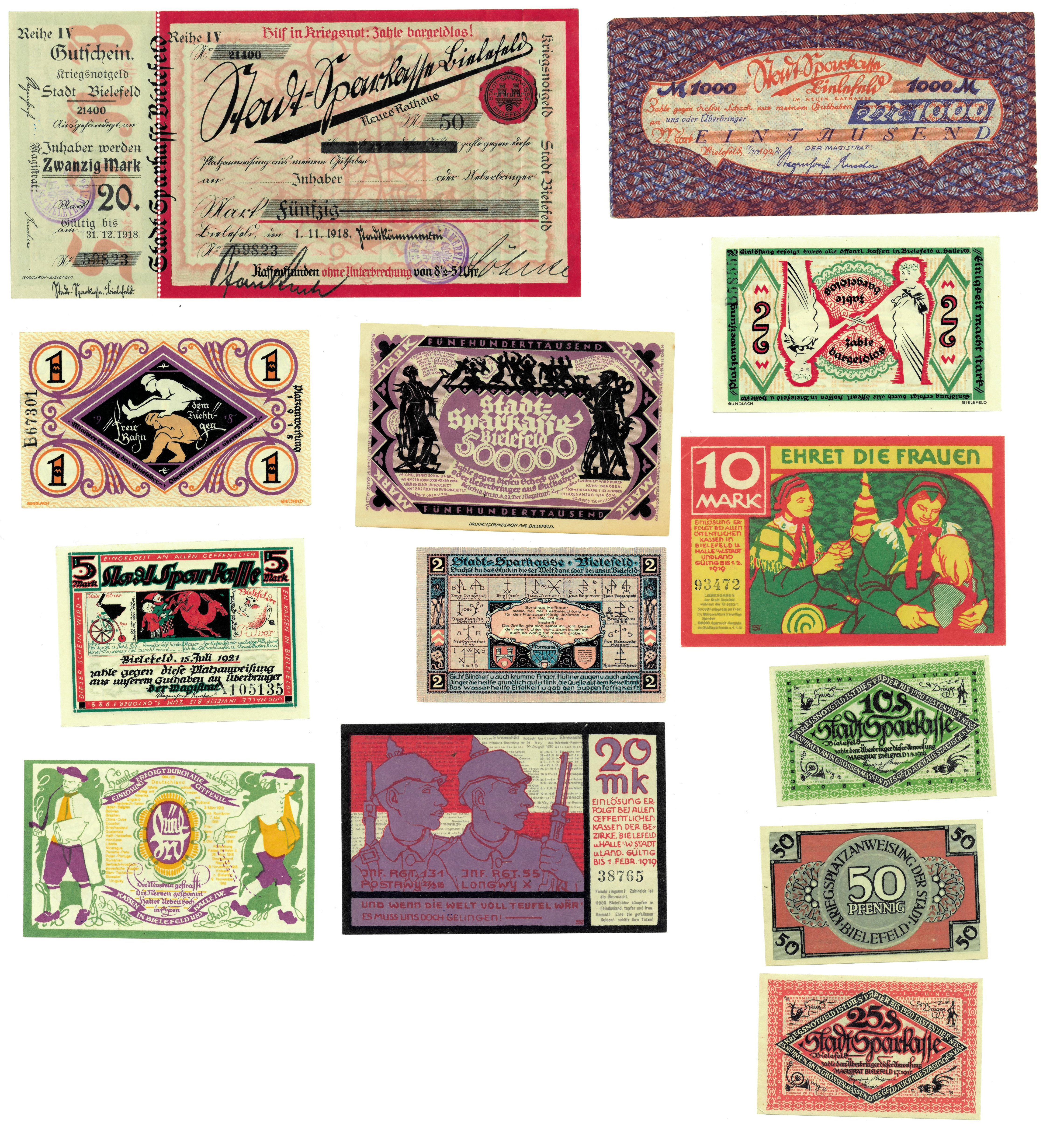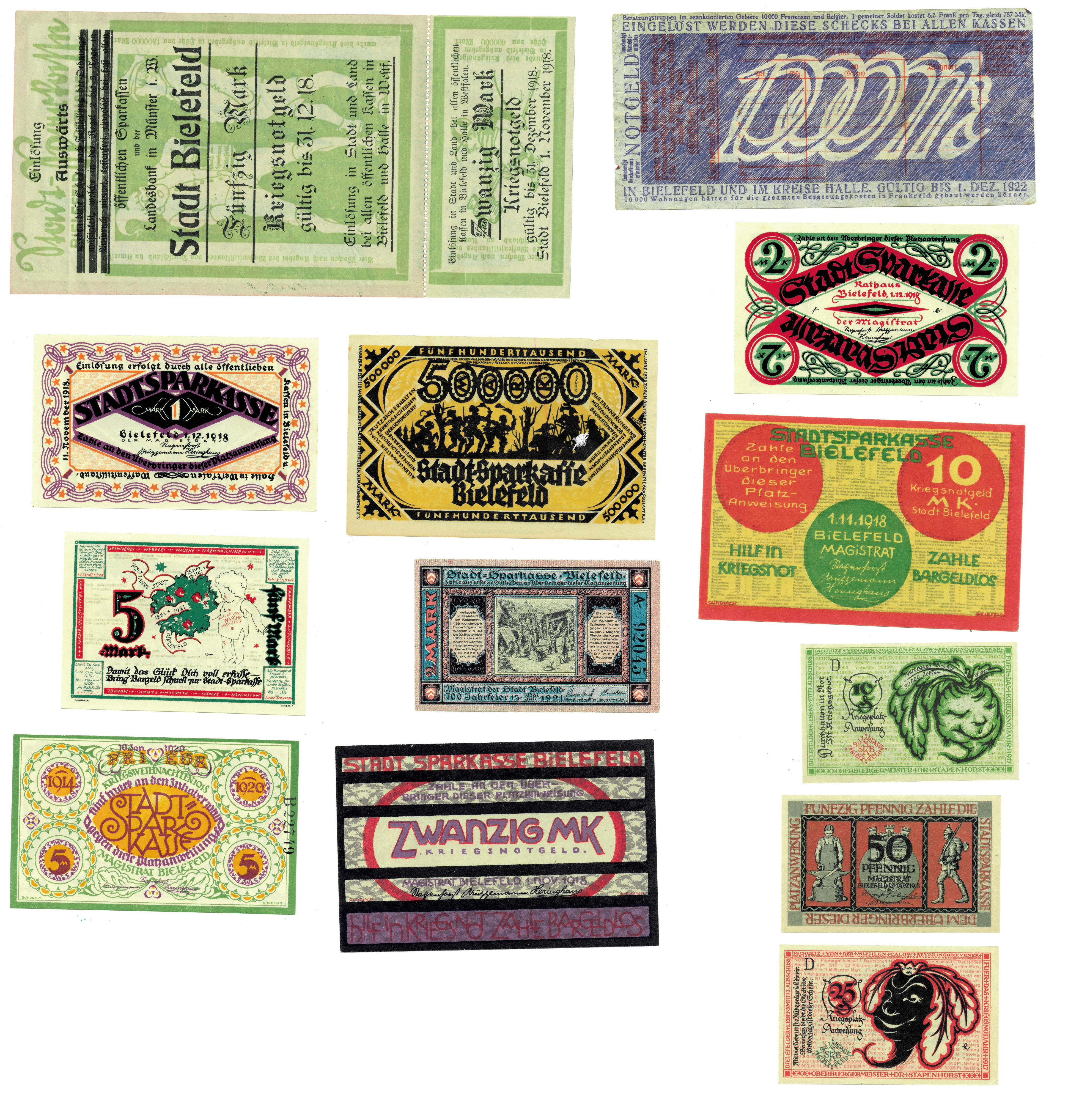 BILLETES EXTRANJEROS. ALEMANIA. Bielefeld, lote de 13 billetes de 1918 a 1923. EBC/SC.
