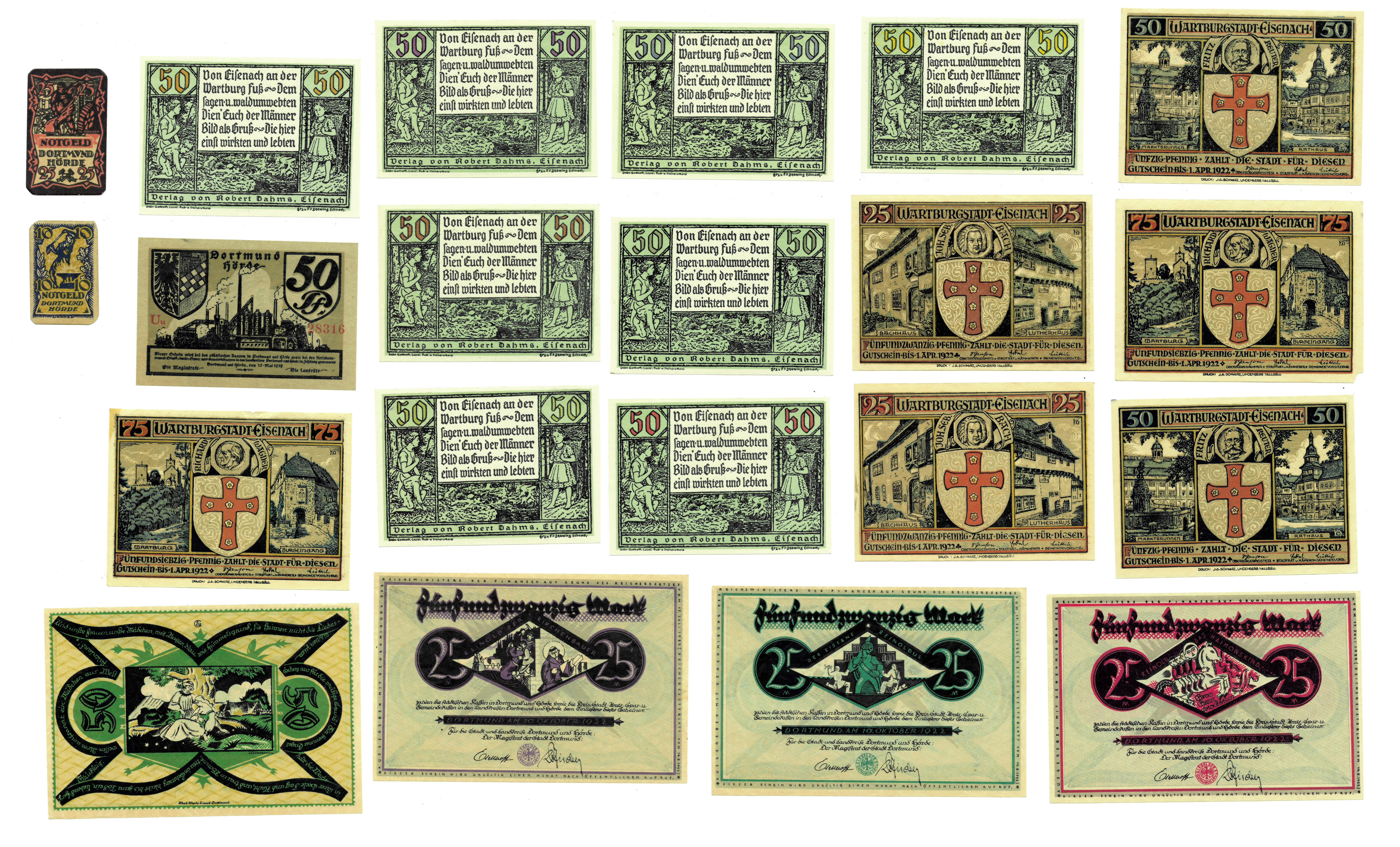 BILLETES EXTRANJEROS. ALEMANIA. Lote de 21 billetes: Dortmund y Eisenach. De 1919 a 1922. SC.