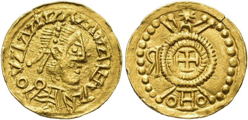 REINO SUEVO. Tremissis. Serie LATINA MVNITA. Ley. MVNITA GALLICA PAX. AU 1,24 g. 16,1 mm. C&M-lám. 17.4, mismo ejemplar; Orol-SU.8, mismo ejemplar. EBC-/EBC. Rarísima: posiblemente única.