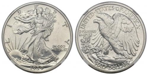 866   -  MONEDAS EXTRANJERAS. ESTADOS UNIDOS DE AMÉRICA. 1/2 dólar. 1939. KM-142. Encapsulada. NGC-PF65.