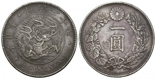 MONEDAS EXTRANJERAS. JAPÓN. 1 yen. 1887. Meiji. AR 26,95 g. 38,1 mm. Y-A25.3. MBC+.