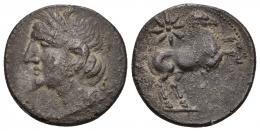 HISPANIA ANTIGUA. DIVISORES DE IMITACIÓN EMPORITANA. A/ Cabeza masculina a der. R/ Pegaso volando a der., debajo dos glóbulos. I-566. ACIP-526. MBC+.
