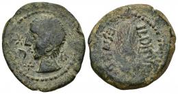 HISPANIA ANTIGUA. CELSA. Augusto. As. A/ Cabeza a der.; C V I CELS AVGVS, alrededor láurea. R/ Toro a der., encima L COR TERR, delante II VIR, en exergo M IVN HHISP. AE 14,70 g. 27,9 mm. I-806. APRH-270b. ACIP-3161a. Pátina verde. MBC+. Muy escasa.
