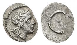 HISPANIA ANTIGUA. INCIERTOS S. III DIVISORES. A/ Cabeza de Apolo a der. R/ Creciente con glóbulo. AR 0,36 g. 10 mm. I-563. ACIP-529. MBC+.
