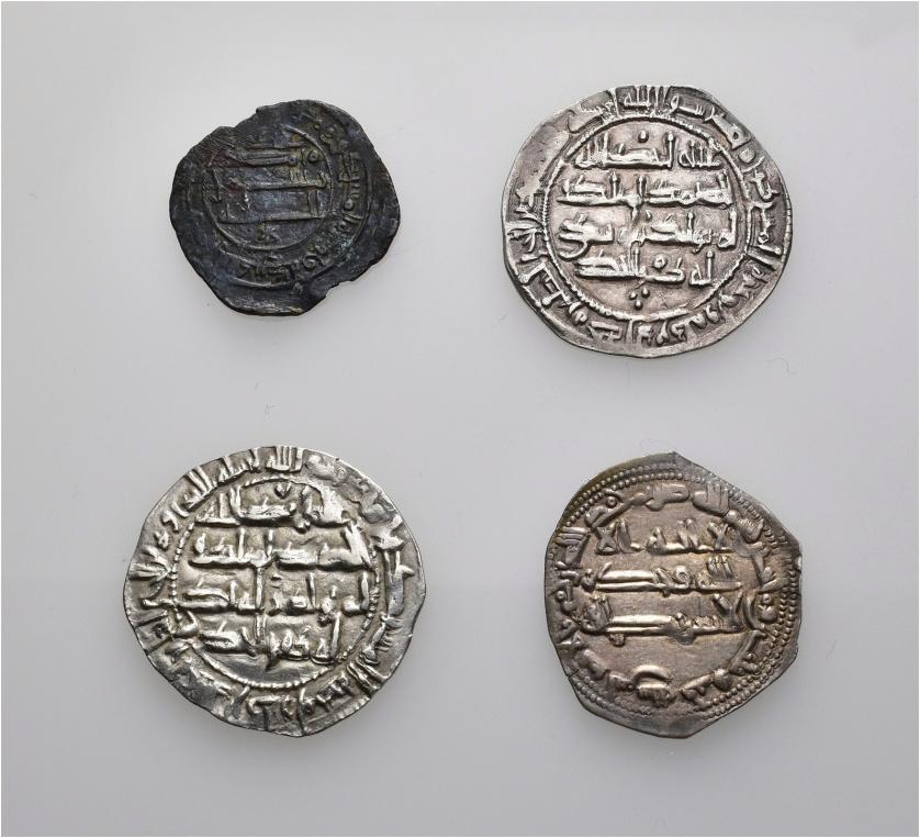 ACUÑACIONES HISPANO-ÁRABES. EMIRATO. Lote de 4 piezas: dírhams Al-Hakam I 199 y 204 H. y Abd al-Rahman II, 233 H, y 1 felús Muhammad I, 268 H. MBC/MBC+.