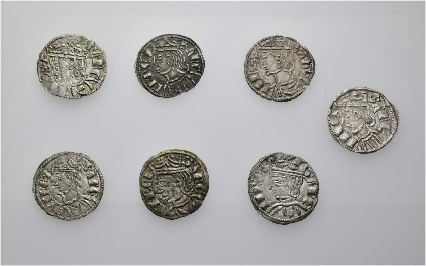 REINOS DE CASTILLA Y LEÓN. REINOS DE CASTILLA Y LEÓN. Lote de 7 piezas: Pedro I (2 cornados y 1 novén) y Juan I (4 blancas del agnus dei). Varias cecas. MBC/MBC+.