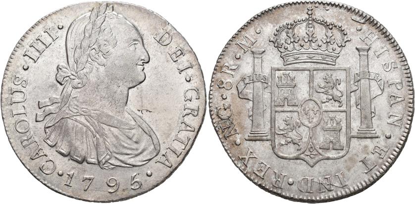 CARLOS IV (1788-1808). 8 reales. Nueva Guatemala. 1795. M. AR 26,95 g. 38,9 mm. VI-736; AC-886. Pequeñas marcas. R.B.O. EBC-/EBC.