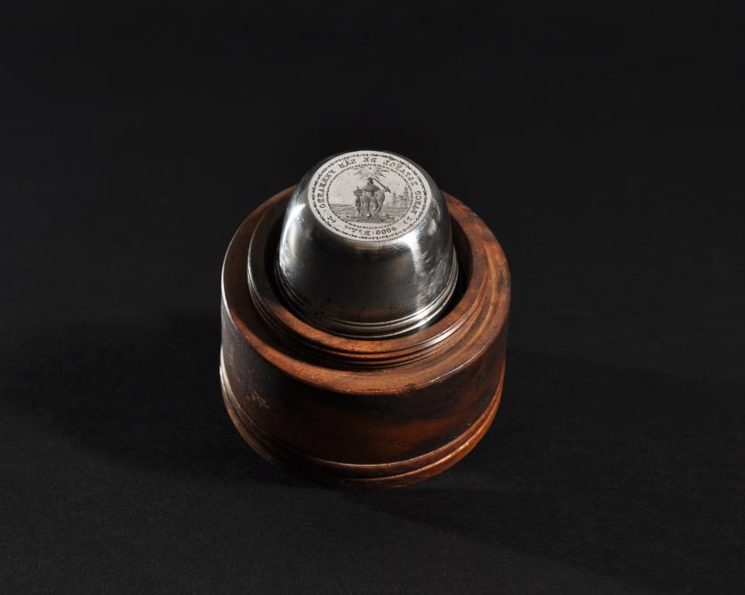 BILLETES ESPAÑOLES. Banco Español de San Fernando. Cuño para la fabricación de una parte de la plancha de cobre con la que se imprime el billete. Anterior a 1856. No se tiene constancia de ningún billete con ese diseño. En su caja de madera original.