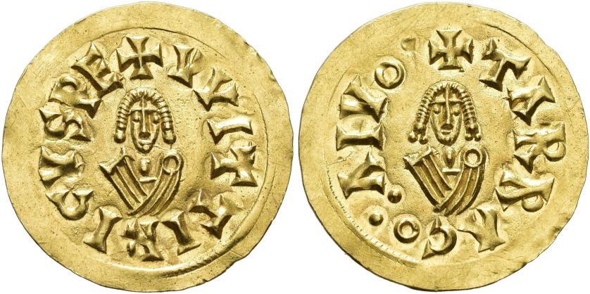 REYES VISIGODOS. LIUVA II (601-603). Tremissis. Ispali. AU 1,5 g. 18,1 mm. CNV-135.1. EBC-. Rara.