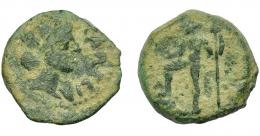HISPANIA ANTIGUA. CARMO. Sextans. A/ Cabeza de Mercurio a der. R/ Caduceo, tres puntos a der. AE 3,90 g. 17,3 mm. I-473. ACIP-2390. BC+/MC. Muy rara.