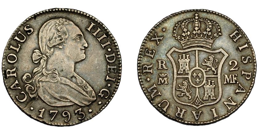 CARLOS IV. 2 reales. 1793. Madrid. MF. VI-522. MBC/MBC+. Escasa.