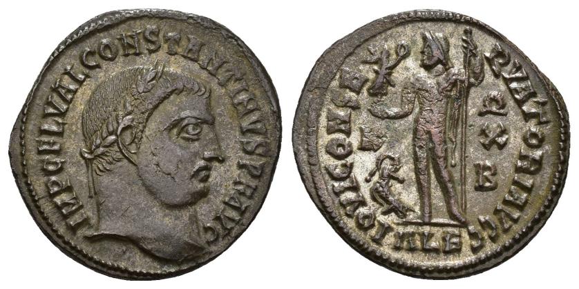 3150   -  IMPERIO ROMANO. CONSTANTINO I. Follis. Alejandría (316-317). A/ Cabeza laureada a der.; IMP C FL VAL CONSTANTINVS P F AVG. R/ Júpiter a izq. con cetro y victoria, delante águila; IOVIS CONSERVATORI AVGG. K/ corona/B//ALE. AE 3,34 g. 20,5 mm. RIC-17. Acuñación algo floja en anv. EBC-/MBC.