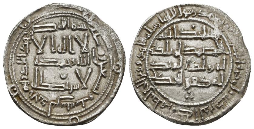 3186   -  ACUÑACIONES HISPANO-ÁRABES. EMIRATO OMEYA. Abd al-Rahman I. Dirham. Al-Andalus 165 H. AR 2,67 g. 29,2 mm. V-63. Leves oxidaciones. MBC+.