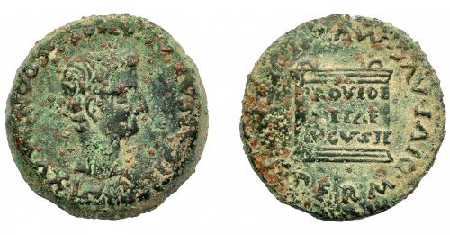 HISPANIA ANTIGUA. ITALICA. Tiberio. As. A/ Cabeza a izq. R/ Altar con ley.; PROVIDE/NTIAE/ AVGVSTI. AE 15,94 g. 29,5 mm. I-1593. APRH-65. ACIP-3333. Algo descentrada. Pátina oscura. BC+.