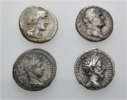 IMPERIO ROMANO. Lote de 4 denarios: 1 republicano y 3 imperiales (Vespasiano, Marco Aurelio y Alejandro Severo). BC+/MBC.