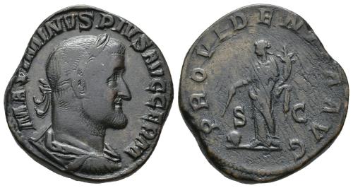 IMPERIO ROMANO. MAXIMINO I. Sestercio. Roma (235-238 d. C.). R/ Ley. : PROVIDENTIA AVG. AE 25,23 g. 28,9 mm. RIC-84. Metal mal batido en el rev. Pátina oscura. MBC-.