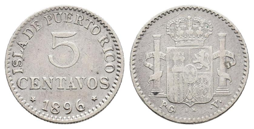 ALFONSO XIII. 5 centavos. 1896 Puerto Rico. AR 1,23 g. 15,9 mm. VII-139; AC-124. Oxidación en rev. Pequeñas marcas. MBC-/BC+.