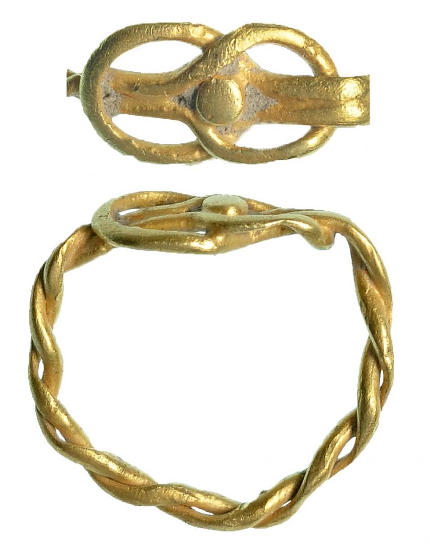 ROMA. Imperio Romano. Oro. Anillo matrimonial formado por dos hilos enredados formando el nodus herculeus. Diámetro: 14 mm. Procedente de colección privada española años 1970-80.