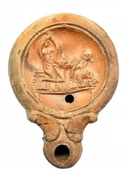 ROMA. Imperio Romano. Terracota. Lucerna con representación erótica. Altura: 10,8 cm. Procedente de colección privada española años 1970-80.