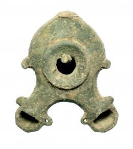 ROMA. Bajo Imperio. Época Paleocristiana. Bronce. Lucerna con dos piqueras. Longitud: 11,6 cm. Procedente de colección privada española años 1970-80.
