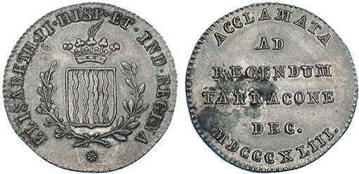 ISABEL II. Medalla mayoría de edad. 1843. Tarragona. AE 21mm. H-19. MPN-no. Leve oxidación. EBC-.