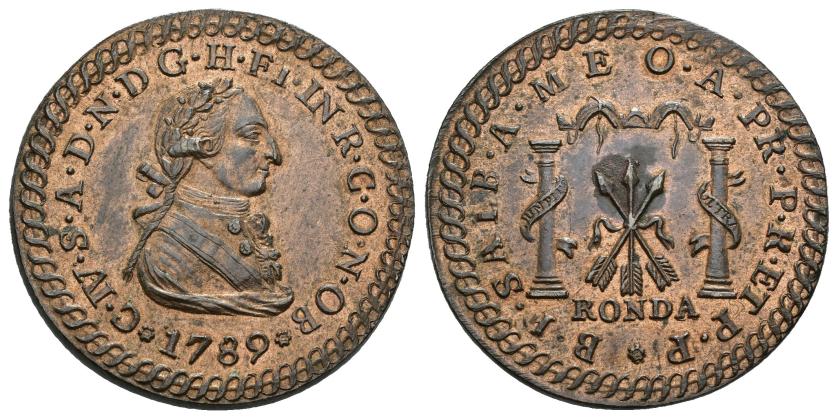 CARLOS IV. Medalla de proclamación en Ronda. 1789. AE 11,48 g. 29 mm. Herrera 89. B.O. EBC+.